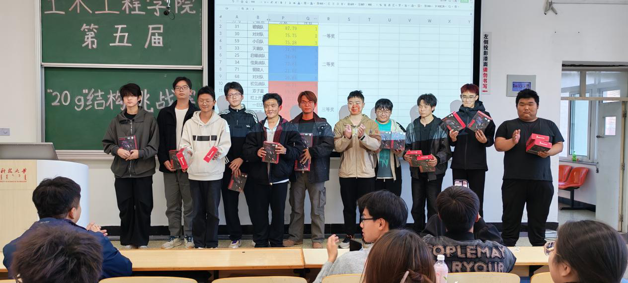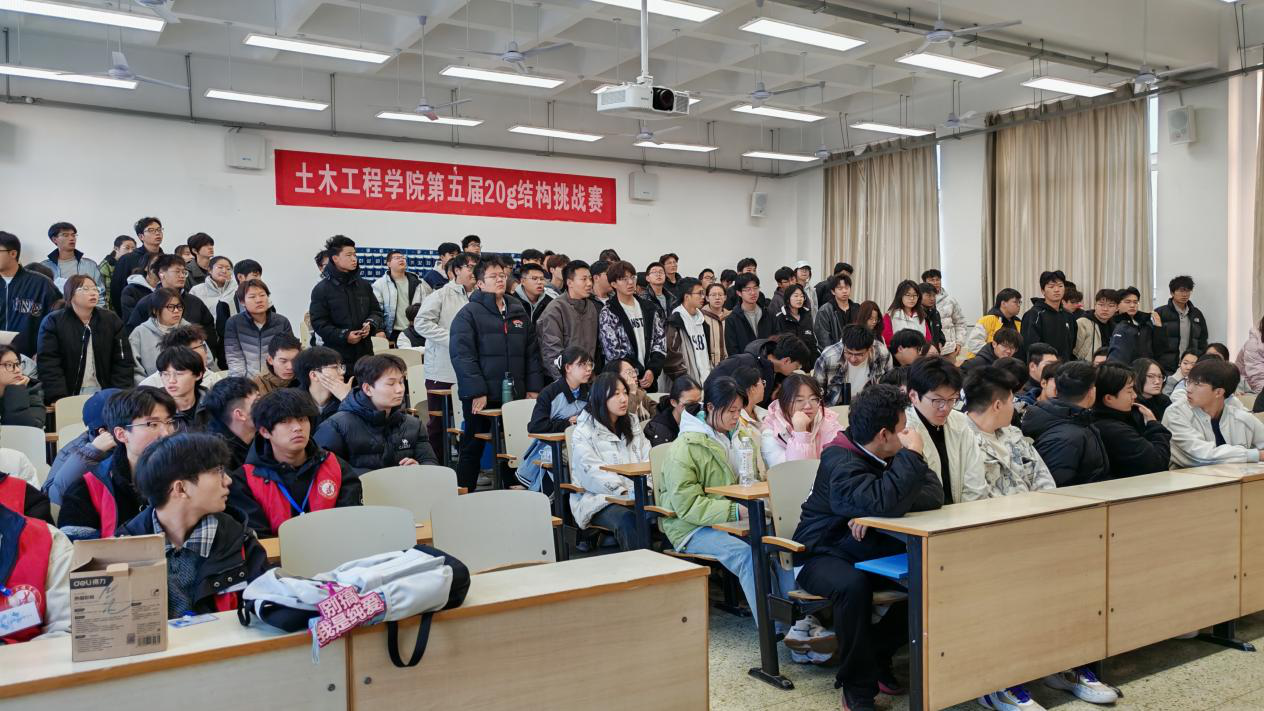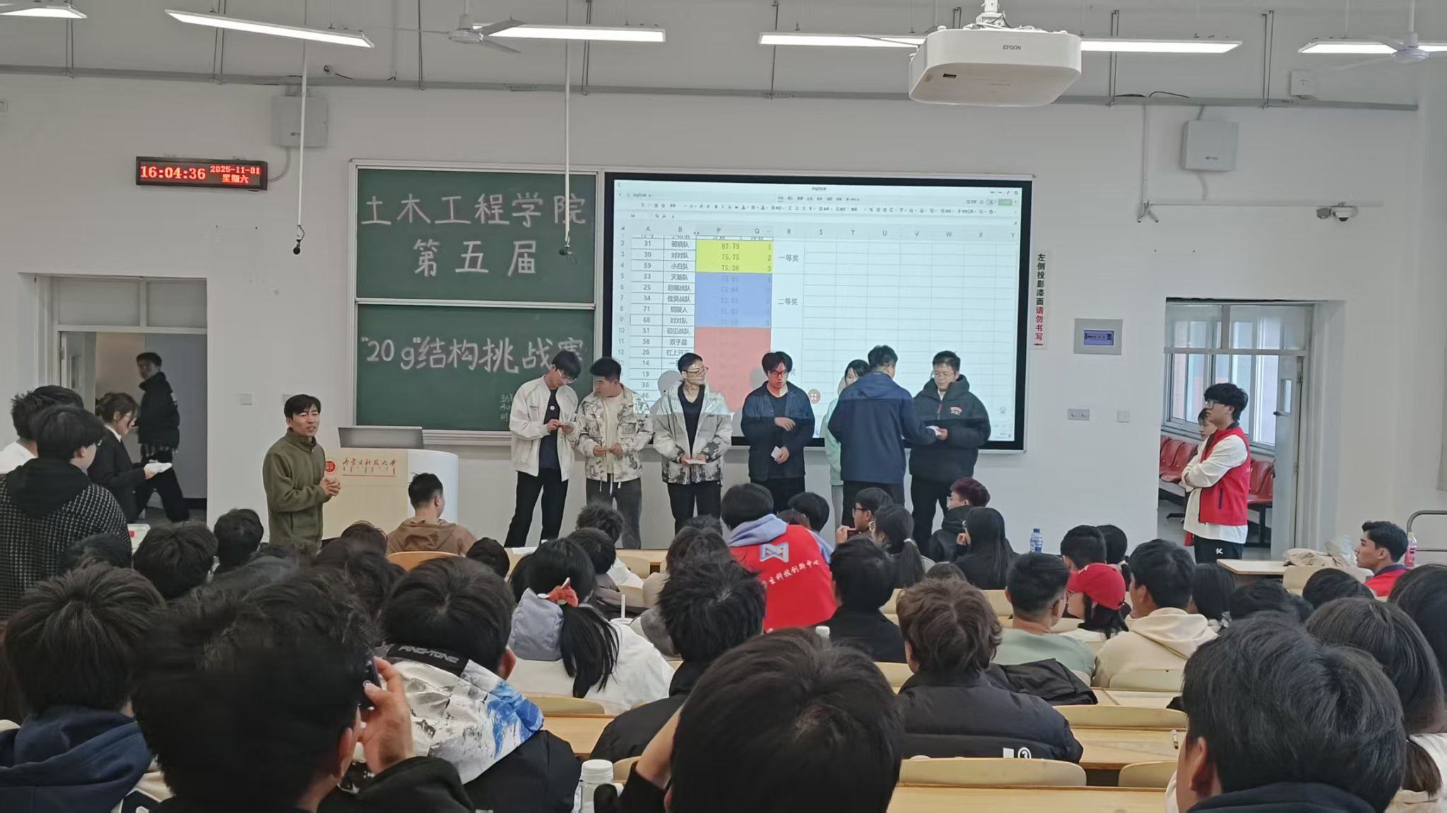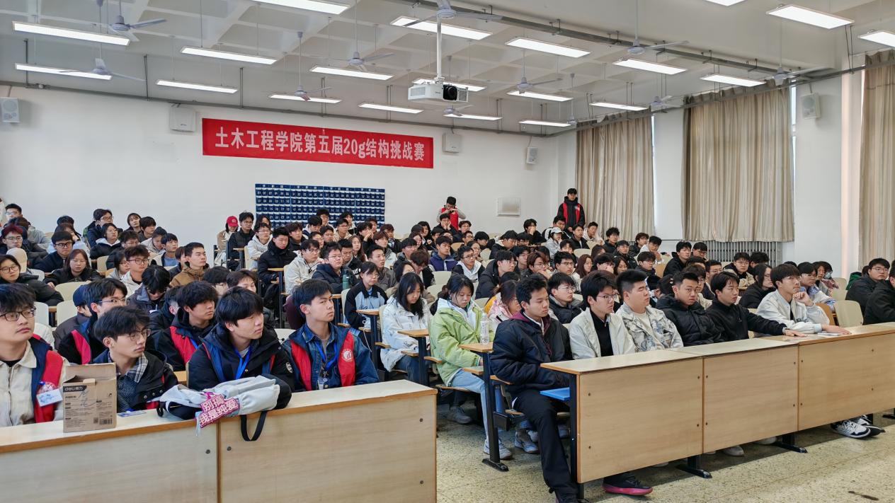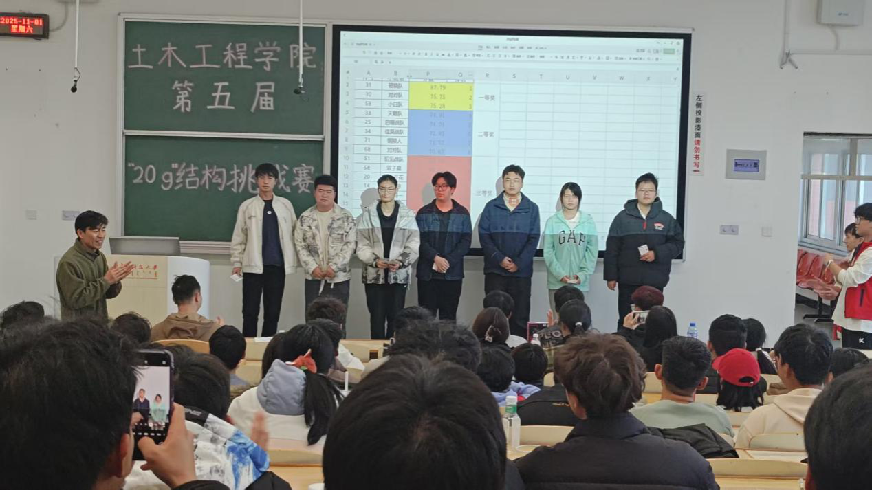 2025年11月1日,由土木工程学院主办、大学生科技创新中心承办的土木工程学院第五届20g结构挑战赛在文馨书苑B区举办。全学院共计62组队伍,124人进入决赛。