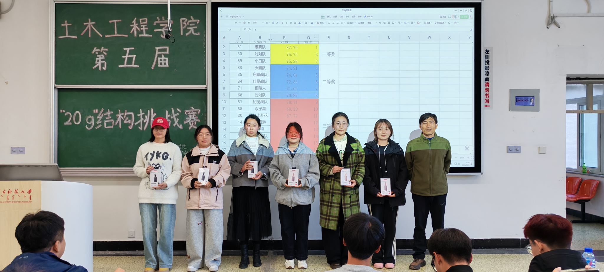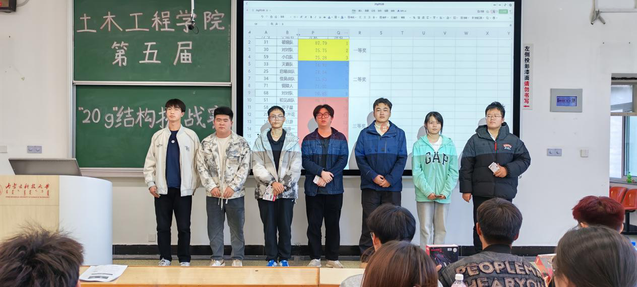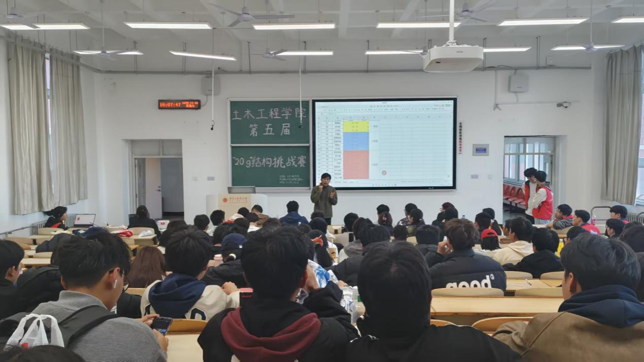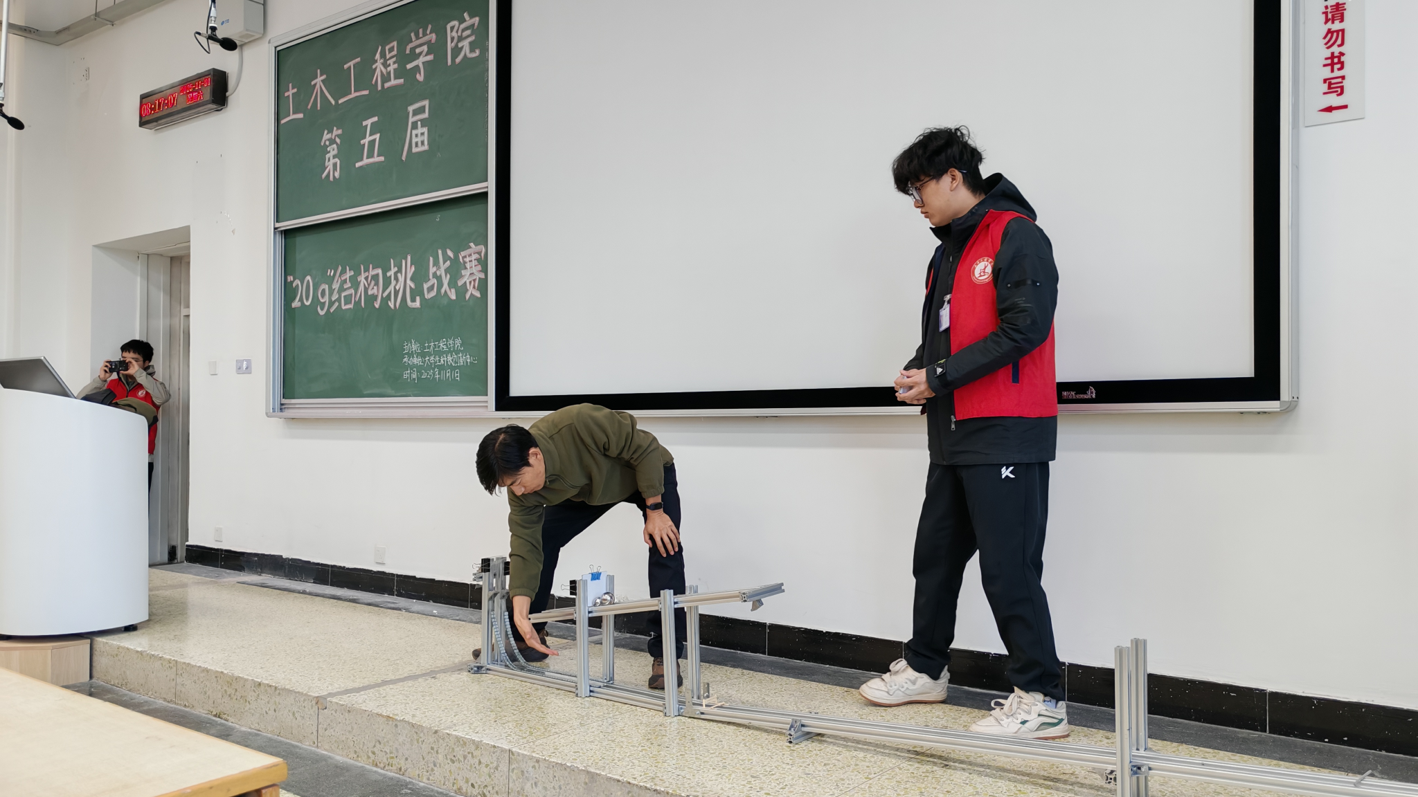 2025年11月1日,由土木工程学院主办、大学生科技创新中心承办的土木工程学院第五届20g结构挑战赛在文馨书苑B区举办。全学院共计62组队伍,124人进入决赛。