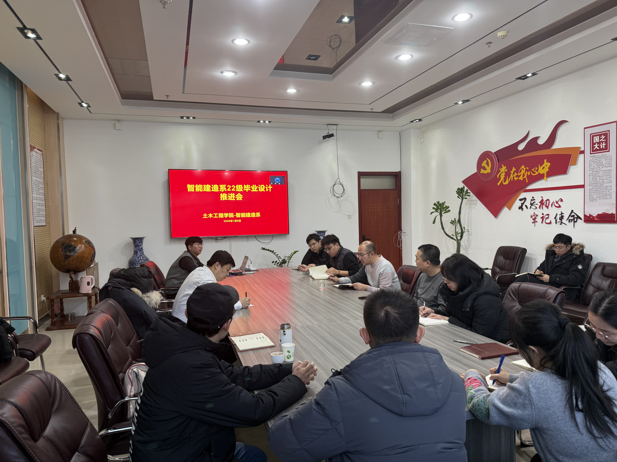 为深入贯彻新工科建设理念,扎实推进智能建造专业本科毕业设计工作,全面提升工程实践能力与创新能力培养质量。智能建造系于2026年1月8日在逸夫楼B502召开了2022级本科毕业设计推进会。会议由系主任樊容主持,毕业设计指导教师、土木工程学院副院长高鹏及教学办主任郁超参加。