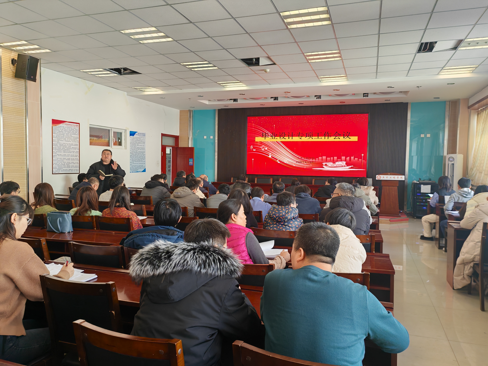 为全面落实OBE教学理念,切实保障高质量完成各类实践教学,1月13日上午,土木工程学院召开全院教师大会,专题部署2026届毕业设计工作。