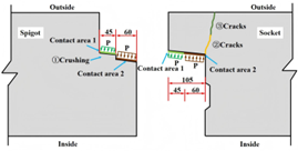 连接件对预制管线隧道接头的破坏过程和形式具有显著影响。GL-0型接头的破坏过程主要经历三个阶段,最终以弯曲破坏告终;而GL-1型接头由于连接件与接头的相互作用,其破坏过程分为四个阶段,并呈现弯曲-剪切复合破坏形态。