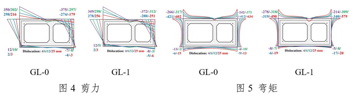 在GL-0和GL-1的各加载阶段,最大接触压力、剪力和弯矩均出现在倒角处,而中跨内力远小于倒角处,建议优化倒角几何形状和曲率半径来降低接头的应力集中现象。