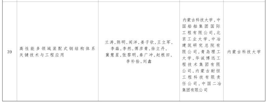 近日,内蒙古自治区党委、自治区人民政府发布2024年度自治区科学技术奖励决定,内蒙古科技大学土木工程学院牵头申报的“高性能多领域装配式钢结构体系关键技术与工程应用”项目,荣获自治区科技进步奖二等奖。