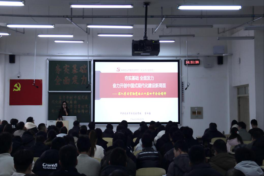 为深入学习领会党的二十届四中全会精神,凝聚学院事业发展合力,2025年12月18日14:30,土木工程学院于逸夫楼G201开展了一场《夯实基础、全面发力,奋力开创中国式现代化建设新局面——深入学习贯彻党的二十届四中全会精神》专题讲座。本次讲座特邀包头市委党校经济与管理学教研室主任、副教授李冰晶进行主讲。