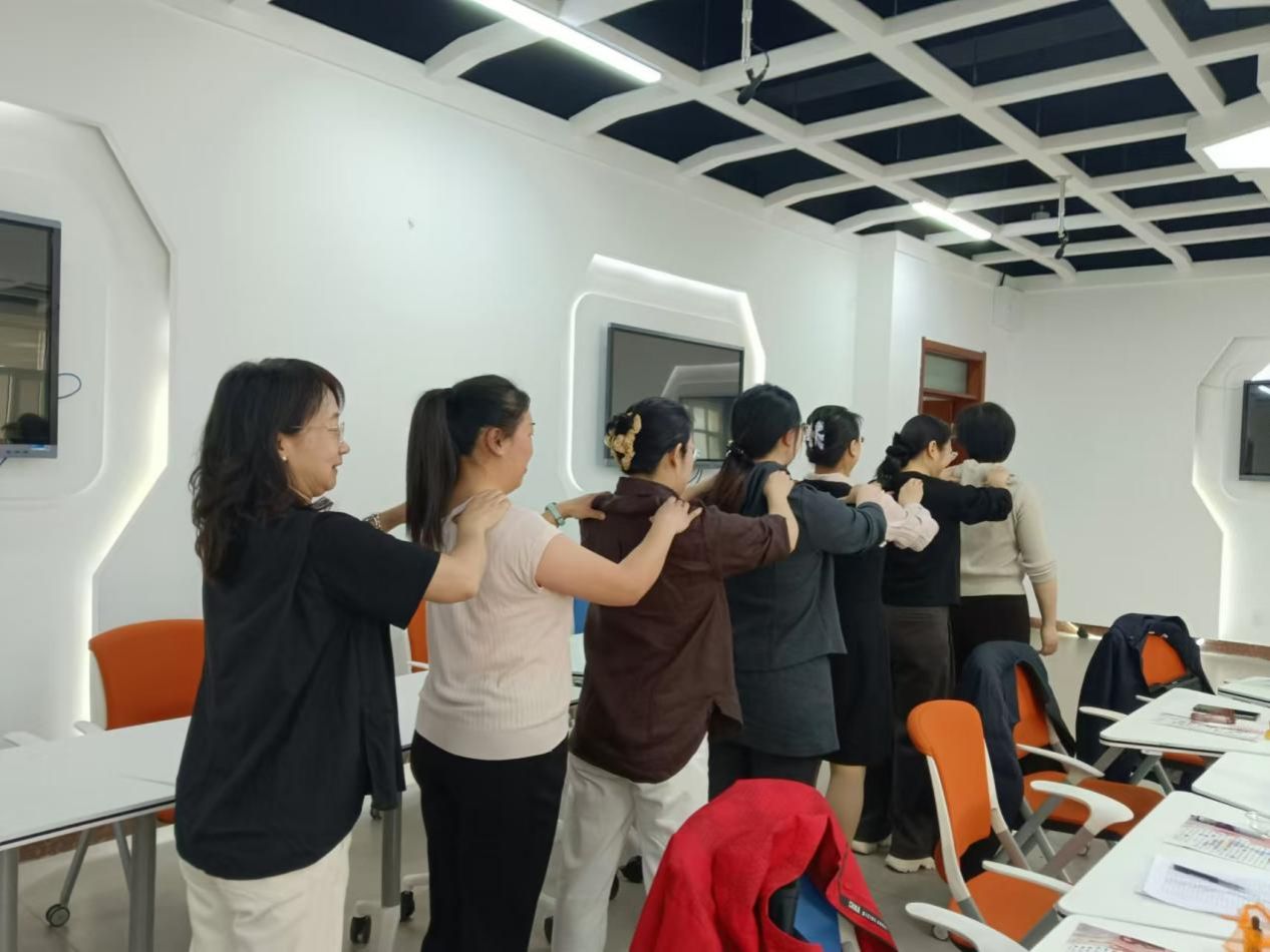活动伊始,一场轻松有趣的“揉肩捶背”破冰小游戏迅速拉近了老师们之间的距离。大家在欢声笑语中互帮互助,不仅放松了紧绷的肩颈肌肉,也卸下了平日工作中的疲惫与拘谨,现场气氛温馨融洽。