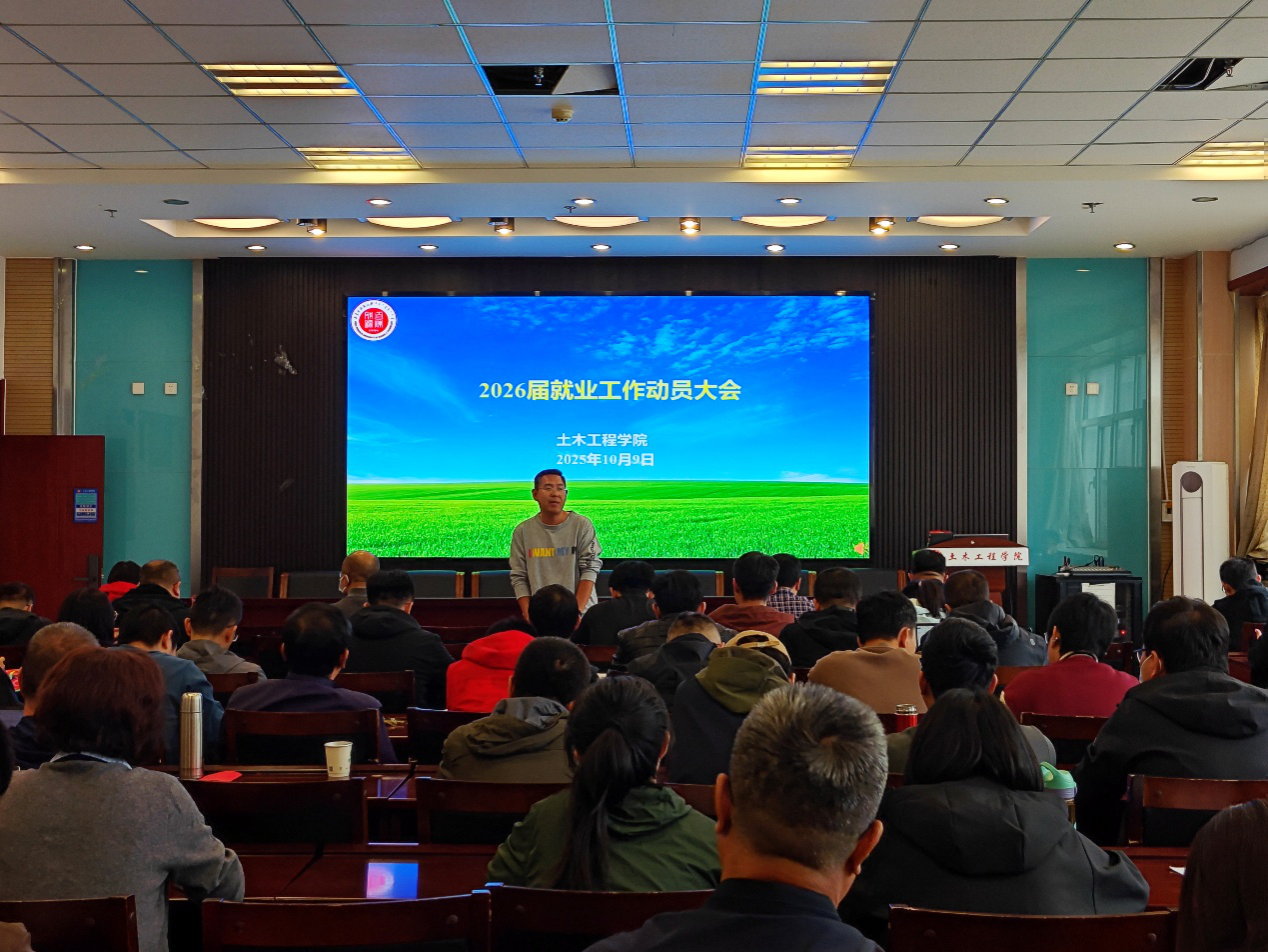 为进一步落实立德树人根本任务,扎实推进毕业生实现高质量充分就业,10月9日下午,土木工程学院在逸夫楼B404召开2026届毕业生就业工作动员会。学院领导班子成员、各系主任、研究生导师、毕业班班主任及辅导员参加会议。