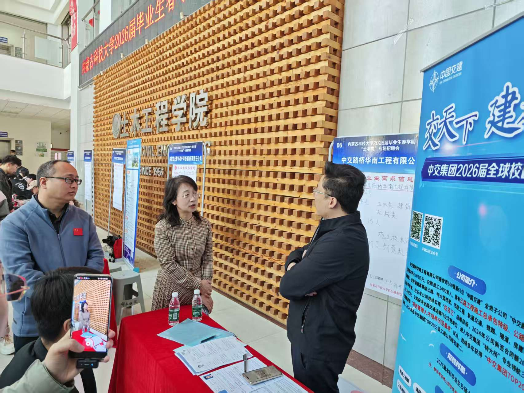 为进一步做好2026届毕业生就业工作,抢抓春季招聘关键期,4月9日上午,内蒙古科技大学2026届毕业生春学期“土木类”专场招聘会在逸夫楼一楼火热举行。